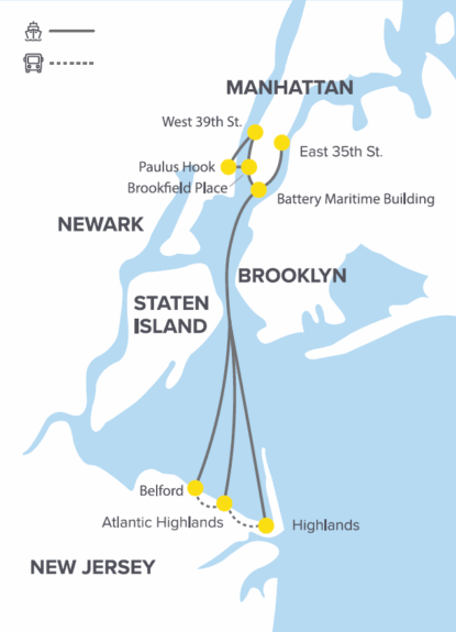 How much of your life are you spending in crowded buses and trains or stressful bumper-to-bumper traffic? Take Seastreak to work and transform your everyday life. We cruise commuters from Belford, Highlands and Atlantic Highlands, NJ, across the beautiful New York Harbor to West 39th Street, Brookfield Place, Battery Maritime Building and East 35th Street. At the end of the work day, Seastreak riders can choose from any of the 22 daily departures from the city to return home.